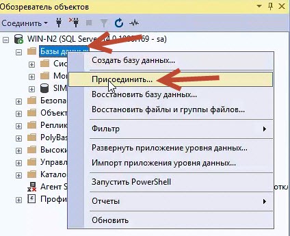 На «базах» правый клик мышкой и выбираем «Присоединить» / Attach.