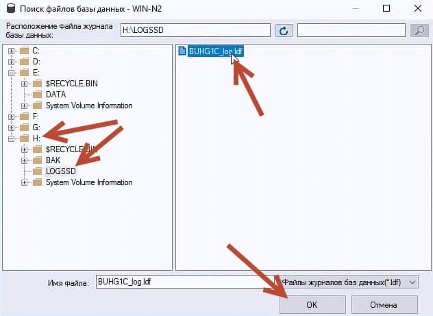 Диск H:\LOGSSD\BUHG1C_log.ldf