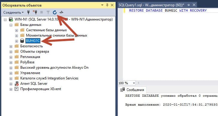 Заем стоит лишь в обозревателе объектов кликнуть F5 или значок обновить, чтоб увидеть базу уже в доступном для работы состоянии.