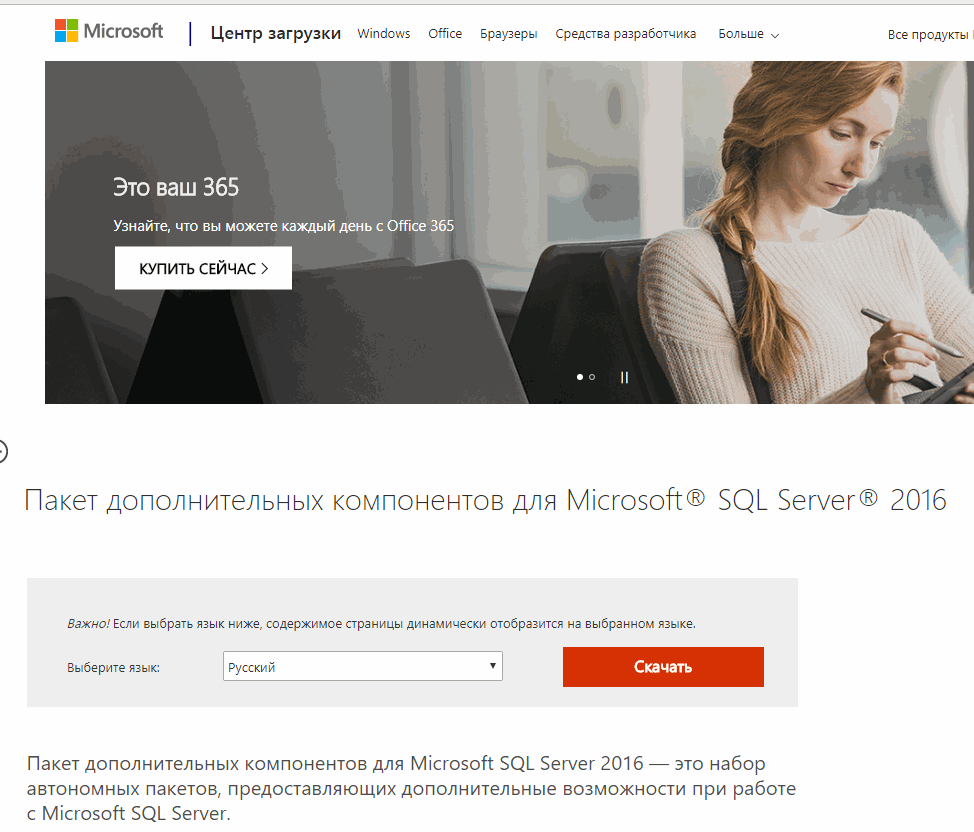 Также MS SQL server Native Client можно скачать и на официальном сайте Microsoft, например в пакете дополнительных компонентов для Microsoft® SQL Server® 2016: