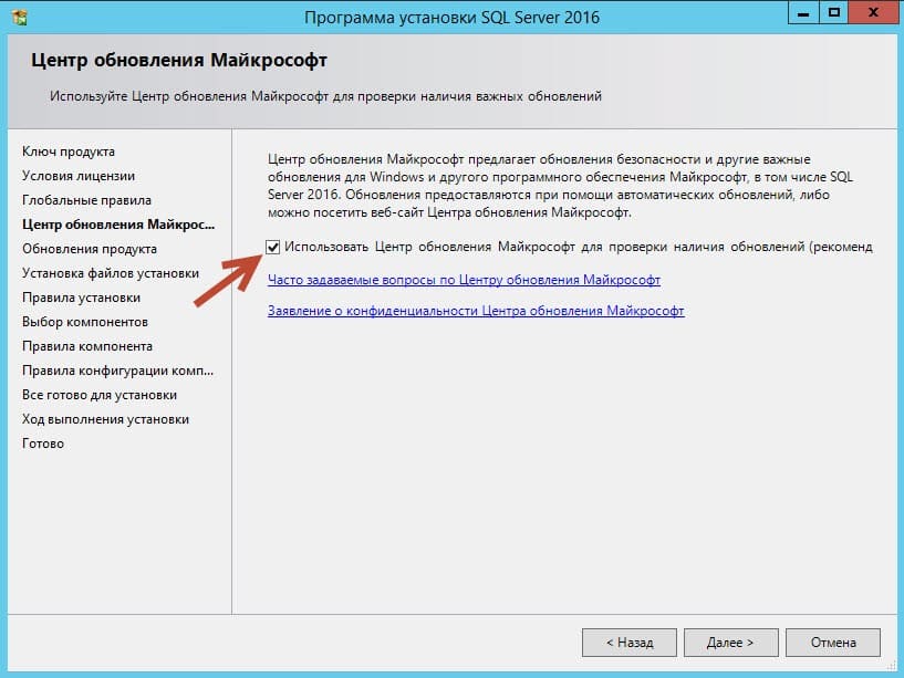 На следующем шаге ставим птичку возле «Использовать центр обновления..» .