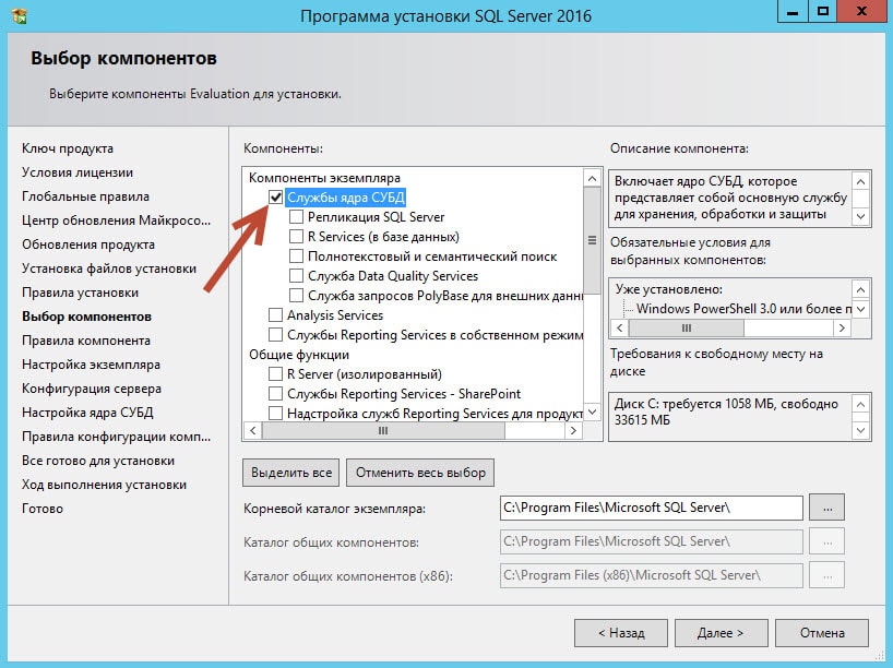 Все остальные компоненты устанавливать не стоит, во всяком случаи, если Вы планируете использовать СУБД для работы только в 1С Предприятии.