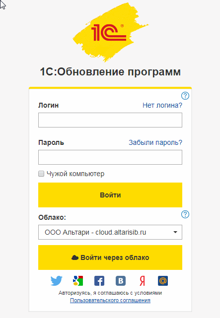 Сайт поддержки пользователей: https://login.1c.ru/login