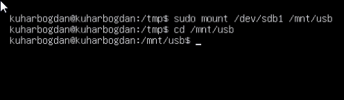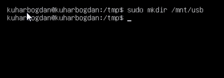 Создадим каталог (куда будем монтировать флешку) командой «sudo mkdir /mnt/usb»