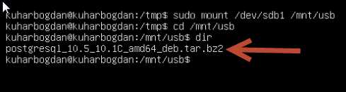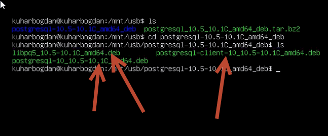Переходим в этот каталог командой: «cd postgresql-10.5-10.1C_amd64_deb»
