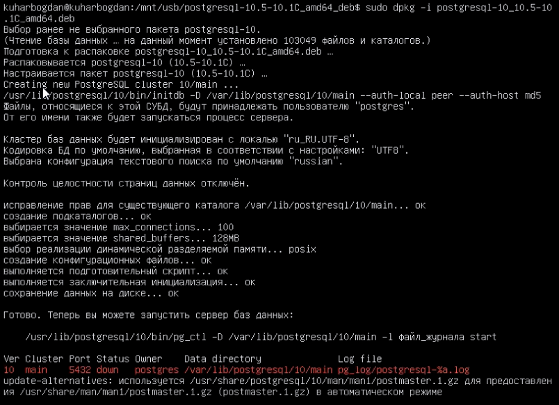 sudo dpkg -i postgresql-10_10.5-10.1C_amd64.deb