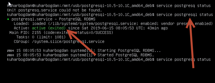 Воспользуемся командой: «service postgresql status» и если видим надпись зеленым цветом «active» значит, все получилось! и PostgreSQL 10.5 мы успешно установили на Ubuntu server 18.04 LTS!