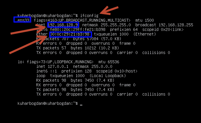 А его MAC адрес: 00:0с:29:21:b3:98