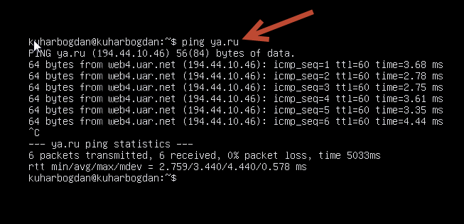 Команды «ping ya.ru» будет достаточно, чтоб проверить подключение.