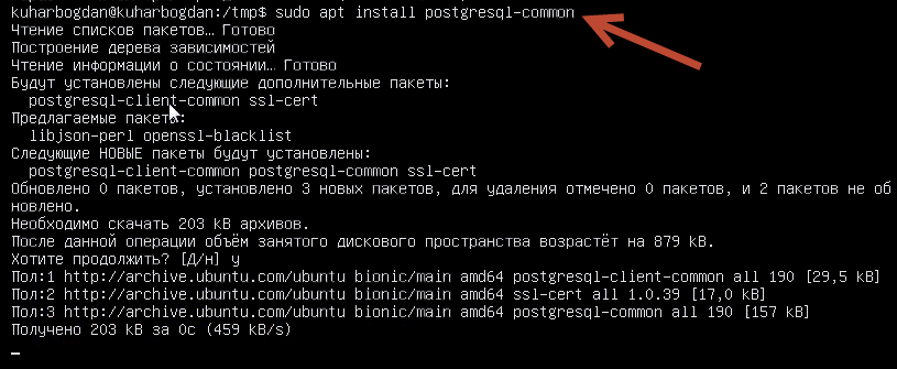 Установим еще «postgresql-common» командой