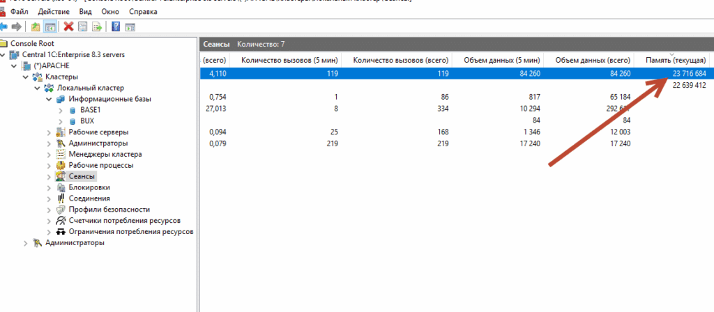 Отсортируем по наивысшим показателям эти сеансы, после чего стоит пристально разобрать у пользователей, где на сеанс ушло больше всего ОЗУ, что они делают в этот момент в 1С, какие отчеты, документы, обработки запускают.