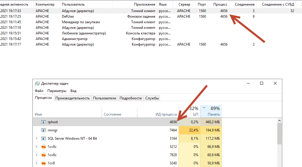 Бывает, что rphost чрезмерно потребляет ОЗУ не сразу, а на протяжении всего рабочего дня или даже нескольких дней. (Можно увидеть «утечку»).